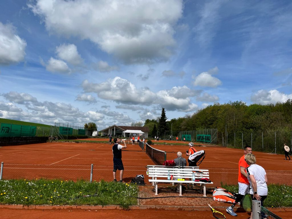 Unser Saisonstart am 6. Mai 2023 war ein voller Erfolg: die Frühjahrsinstandstellung unserer Tennisplätze war, Dank tatkräftigen Helfer*innen, pünktlich fertig geworden. Zum Saisonauftakt veranstalteten wir, mit 20 gemeldeten Teilnehmer*innen, unser Schleifchenturnier. Die Spielpaarungen wurden per Zufallsmodus vor Ort ausgelost. Es ergaben sich bei schönem Wetter spannende und großartige Spiele. Mit Kaffee, selbstgemachten Kuchen und einem leckeren Abendessen war auch für das leibliche Wohl bestens gesorgt.