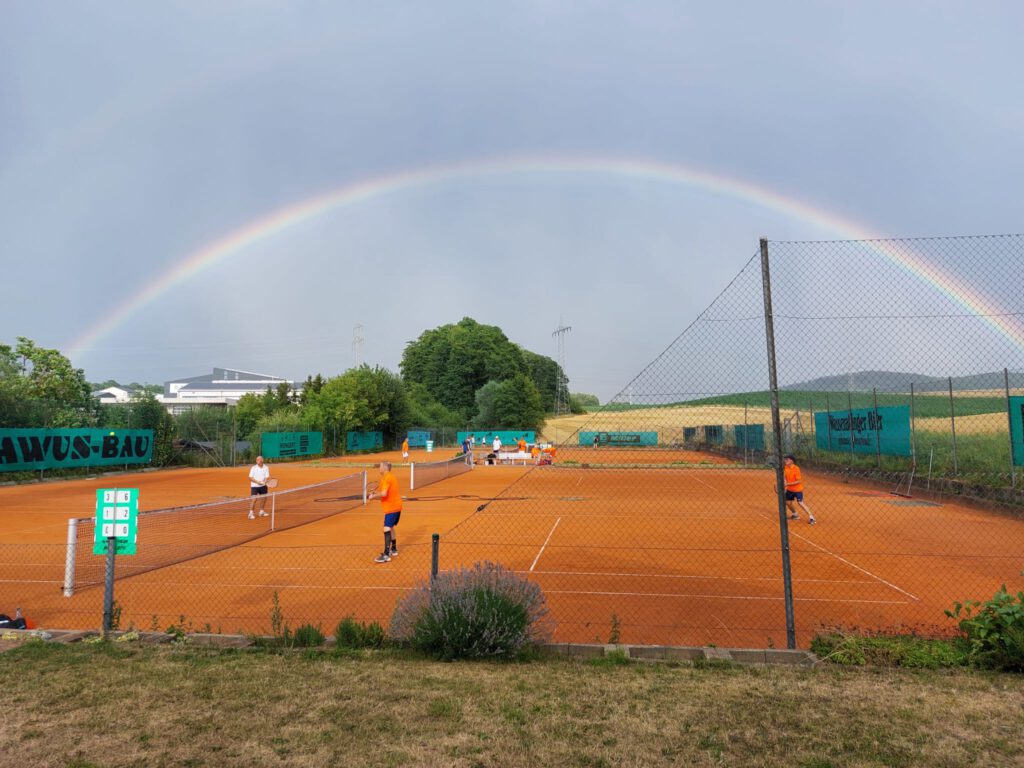 Die vergangene Woche stand unter einem guten Regenbogen. Ein Stern war nicht so schön über dem Tennisplatz abzulichten. Die erste Meisterschaft steht fest! Die Herren 70 zeigen dem Rest, wo es lang geht!