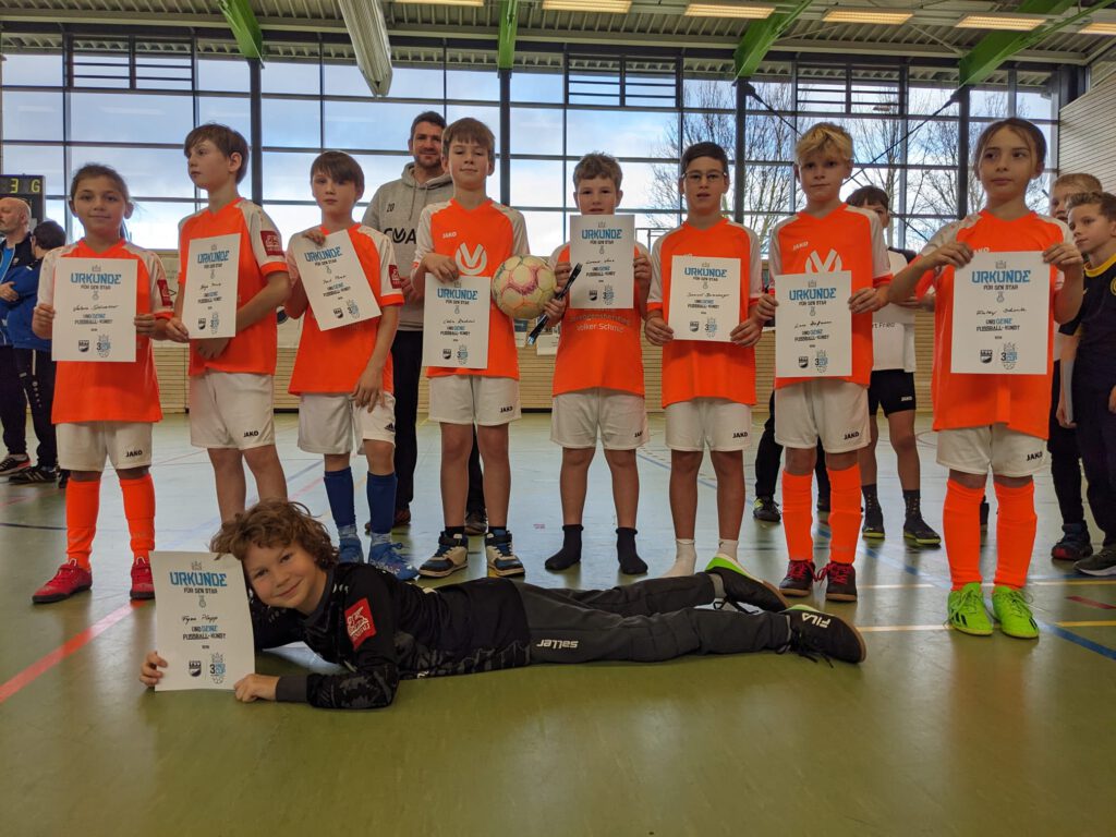 Im letzten Hallenturnier ging es Anfang Februar (04.02.) für die Jungs und Mädels nach Dettingen. Der Start war nicht ganz optimal und man verlor das Auftaktspiel. Im zweiten Spiel machte das Team es besser und konnte die Niederlage egalisieren. Nach zwei weiteren erfolgreichen Spielen ging es ins Halbfinale. Dieses wurde mit 0:1 knapp verloren. Im Spiel um Platz drei, welches mit 1:3 verloren ging, hatten wir trotzdem Grund zur Freude, denn die Jüngste im Team, Valeria konnte ihr erstes Tor erzielen. Insgesamt sind wir mit den Ergebnissen zufrieden.